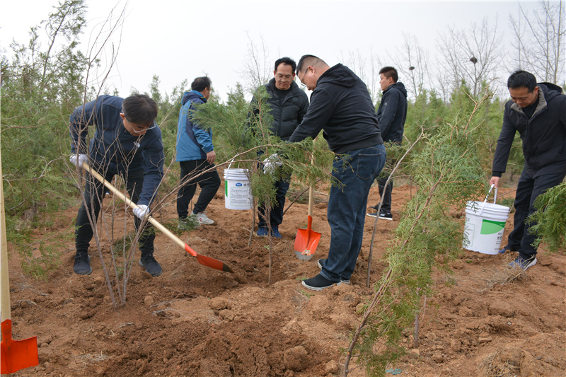 当天上午约九时,广大党员干部群众在华体会体育-华体会(中国) 党委委员、副总经理汪洋同志的带领下,早早地来到了植树基地现场,在与现场工作人员对接后,工作人员为项目部划定植树地块范围,指明了树苗和水源所在地,并对植树的基本要求进行了简要的讲解。随着汪总一声令下,开始干活。同志们立即投入植树活动,有的挖树坑、有的拿树苗,有的提水、有的培土,汪总率先垂范、身先士卒,党员群众们干得热火朝天,劲头十足,植树现场一派繁忙景象。在大家植树的同时,项目部景观工程师主动为大家讲解植树的一些基本技巧和本次植树的种类—侧柏。在汪总的亲自带领下,同志们在约一个半小时的植树活动中共植树66棵,圆满完成了本次植树任务。