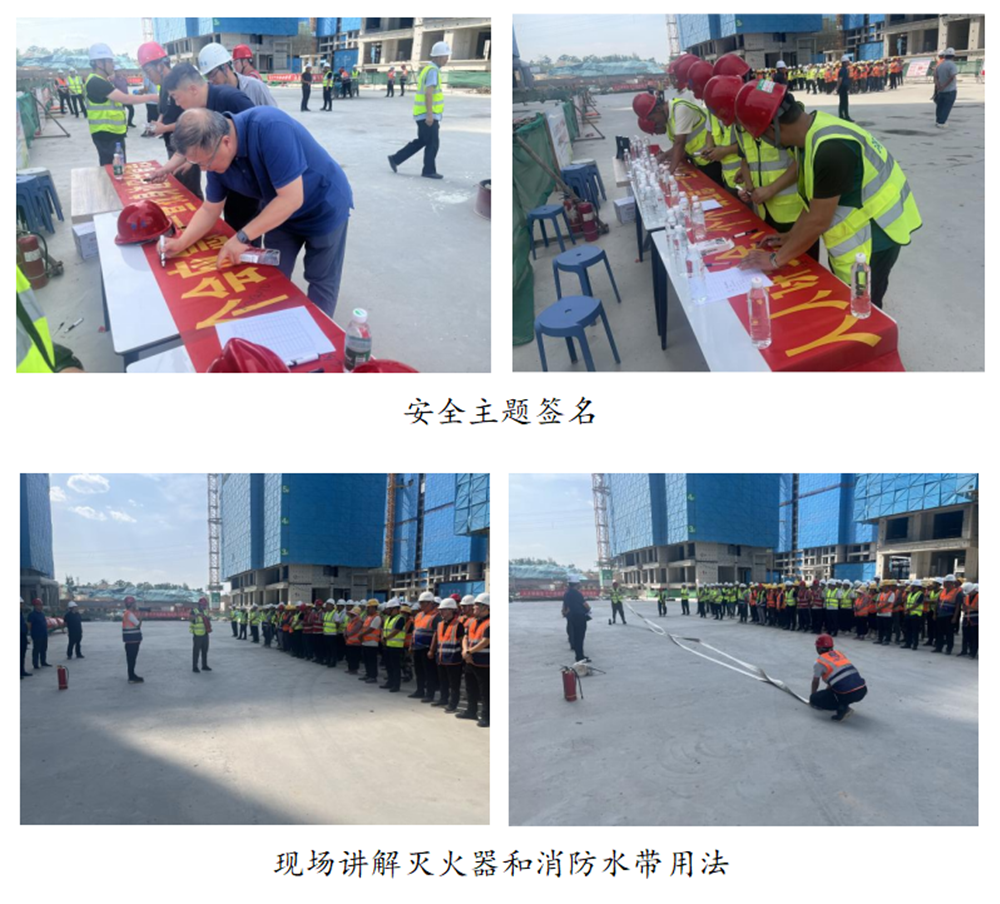 活动期间,大家积极参与安全主题签名和主题宣誓,讲解员现场讲解消防水带和灭火器的用法,解答安全生产相关知识,并开展了消防实战演练。华体会体育-华体会(中国) 分管安全生产的总经理助理黄志澎作重要讲话,强调了安全生产的重要性,要求各单位扎实做好今年防汛工作,并为一线工人发放防暑降温药品和安全知识手册200套。