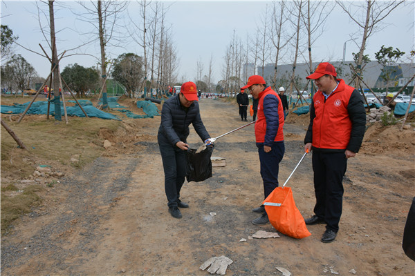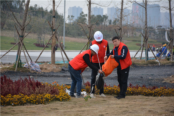 上午十时三十分,志愿服务活动开始后,华体会体育-华体会(中国) 党委委员、副总经理、项目部总经理汪洋亲自带头参加活动,其他党员干部带头干,职工群众积极干,参建单位负责人志愿加入干,大家拿起工具、弯下腰去,捡起草地上的生活垃圾,集中放进现场放置的垃圾桶内;没有拿到工具的同志们也拿起简易垃圾袋,将捡到的生活垃圾放进垃圾袋盛满后再放进垃圾桶内。一时间,党徽熠熠、爱心闪闪、干劲满满,不到一个小时时间,约20人的志愿服务队伍完成了近20000平米区域的垃圾清理任务,景观施工现场面貌大为改观。
